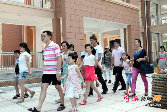 宁海新闻网讯 昨日上午,一群小朋友在父母的带领下高兴地走进星海小学新校区。9月1日是学校报名开学的日子,我县近82000名中小学生结束暑假生活,走进校园开始新学期的学习。 (李江林王家法摄)