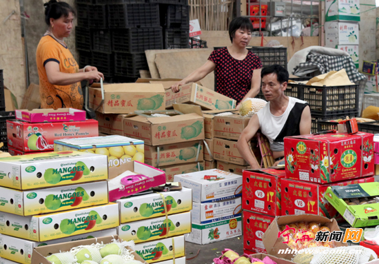 宁海新闻网讯 随着传统的中秋佳节即将到来,县果蔬市场也进入一年中较繁忙的日子,成箱的水果以及水果礼盒作为送礼佳品开始走俏,销售额也是连日提升。 (记者惠广亮摄)