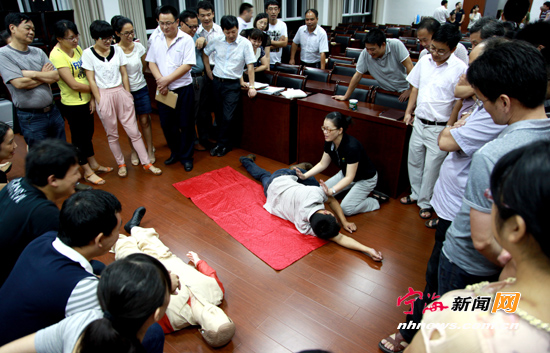 ![]() 宁海新闻网讯 日前,宁海红十字会有关工作人员来到深甽镇,开展群众性应急救护技能考核培训。工作人员边讲解边示范各类意外事件的正确处理方法,并对心肺复苏及创伤应急救护进行现场演示,随后对在场每个干部群众进行应急救护技能考核,并为考试合格者颁发红十字会救护员证。图为示范现场。 (李江林赵士超摄) |