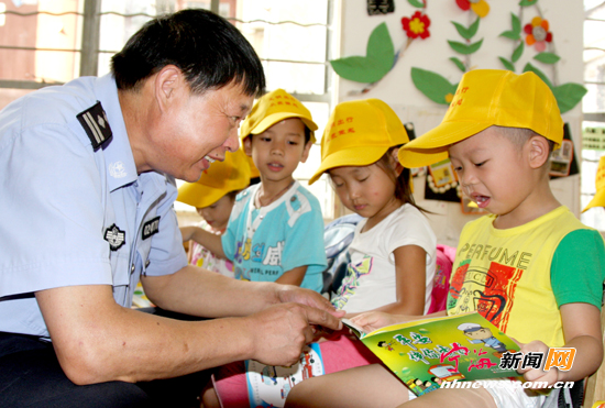 宁海新闻网讯 日前,县交警大队宣传民警来到李和洋幼儿园,给小朋友们送上交通安全漫画书以及小黄帽,并向小朋友们传授红灯停、绿灯行、走路靠右行等基本知识,从小培养他们遵守交通规则的好习惯。(李江林 顾晓晓摄)