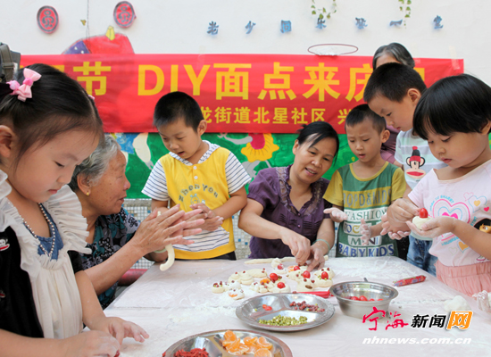 宁海新闻网讯 9月17日,跃龙街道北星社区组织居民在辖区幼儿园与小朋友一起,以“大手牵小手”的形式,DIY创意制作面点,共迎中秋、国庆佳节。整个活动现场的氛围十分融洽,其乐融融。(惠广亮郑洁摄)