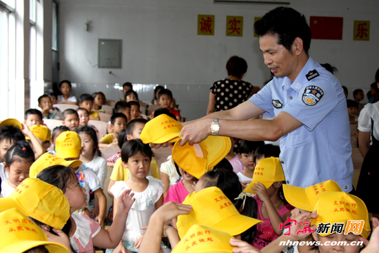 宁海新闻网讯 日前,县交警大队和黄坛中队的民警们在黄坛小学举行小黄帽发放仪式,并为近千名小朋友进行交通安全知识培训。活动旨在加强中小学生的交通安全和自我避险意识,培养遵守交通法规的好习惯。 (李江林顾晓晓摄)