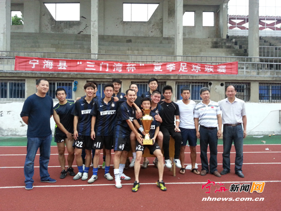 宁海新闻网讯 日前,2013年宁海县“三门湾”杯夏季足球联赛在体育中心决出冠亚军。县公安局足球队获得联赛冠军,理想电脑1队获得亚军,峡山景田队获得第三名,宁海模具产业园区队、国华宁电队获得最佳组织奖。(记者王银宁摄)