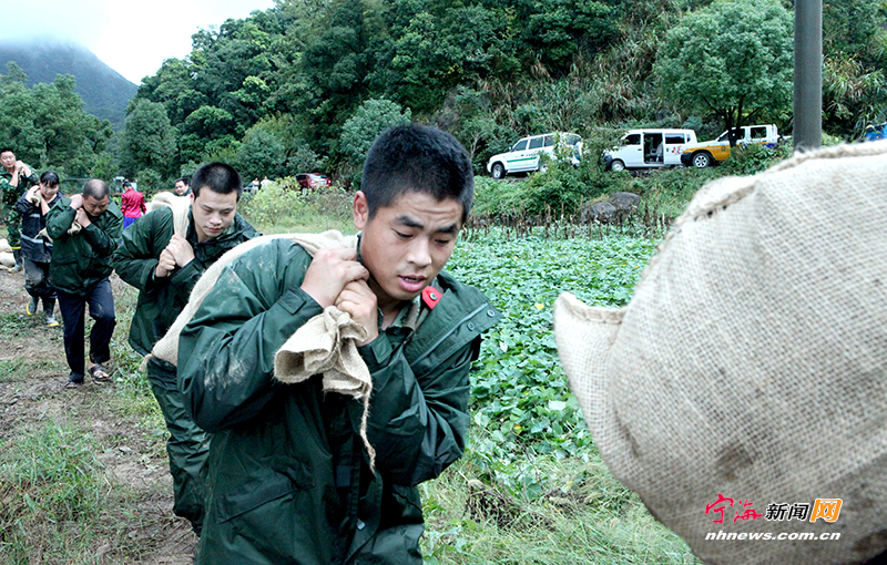 昨日上午,受强台风“菲特”影响,一市镇武岙王自然村的泄洪道出现潮水倒灌,几处堤坝出现塌方和渗漏现象,一旦决堤海水和山洪就会淹没武岙王、小河塘等几个自然村400余户群众、以及上千亩养殖塘,情况非常紧急,为确保村民的生命财产安全,一市镇立即组织民兵应急小分队的队员和边防派出所官兵一起,对几处出现险情的堤坝进行堵漏和加固。(李江林 周如歆)