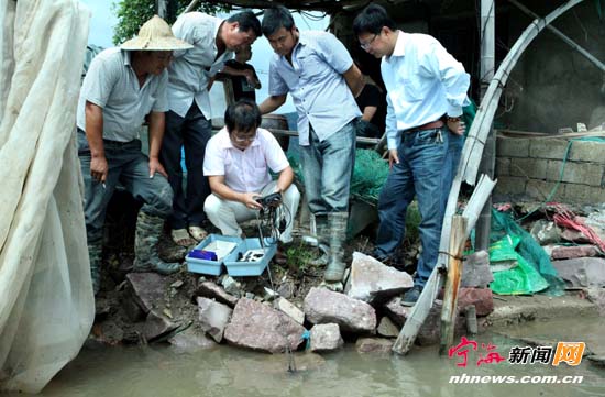 ![]() 宁海新闻网讯 昨日上午,县海洋与渔业局的两名技术人员来到一市镇旗门塘,正在为养殖户检测塘水的咸度。受“菲特”台风影响,我县东部沿海乡镇许多养殖塘被淹。为减少台风带来的损失,降低后期水产养殖发病率,县海洋与渔业局组织技术力量分赴东部沿海各乡镇,为广大养殖户提供必要的技术指导和后期预防及处理事项服务。(李江林周如歆摄) |