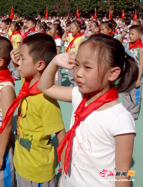宁海新闻网讯 今年是少先队建队64周年,近日,我县各小学开展了丰富多彩的主题队日活动。举行入队仪式、重温入队誓词、老队员为新队员佩戴红领巾,增强了少先队员对少先队组织的光荣感、归属感。图为潘天寿小学240多名一年级学生挂上鲜艳的红领巾。