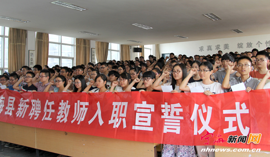 宁海新闻网讯 “教书育人,为人师表……做一名学生喜欢、家长信任、社会认可的人民教师。” 8月9日下午,我县211名中小幼新分配教师在金桥校区举行了隆重的入职宣誓仪式,并进行为期5天的入职培训,让他们尽快适应角色转换,从心理上、工作上、行为规范上适应教师职业的要求。 (李江林王家法摄)