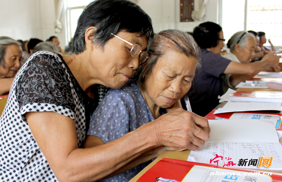 ![]() 宁海新闻网讯 昨日下午,在前童镇竹林小学,一群“银发学生”走进课堂,认认真真地跟着老师认字识数,这是前童成校为农村文盲老人开办的一次扫盲培训班。这群特殊的学生,平均年龄73岁,年纪最大的已有91岁高龄。据统计,前童的文盲人口约1200人,根据农村学员居住分散、年龄偏大、记忆力减退但学习积极性高的实际情况,该镇成校采取集中定点培训、退休教师进村入户个别辅导、中小学生“小手拉大手”家庭辅导等多种形式,为他们量身打造专属课程。(李江林严洁摄) |