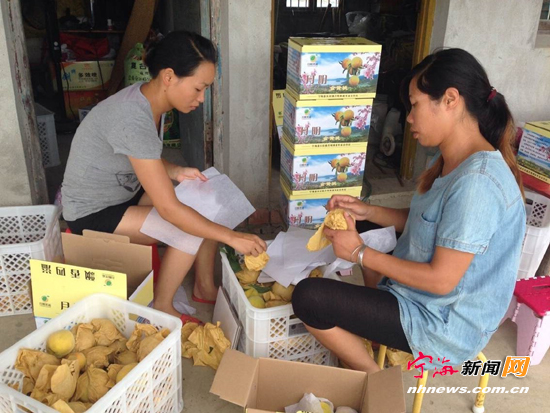 宁海新闻网讯 又到金黄桃成熟季节,8月13日,长街镇车岙港自然村的果农们将采摘来的桃子打包装箱。据了解,与普通黄桃相比,该村的金黄桃色泽金黄、汁多味甜、香气浓郁,很受宁波市场的欢迎。 (记者黄浓珍摄)