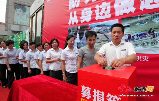 宁海新闻网讯 一方有难、八方支援,助力公益从身边做起,丽水地区洪灾牵动着宁海人民的心。8月23日下午,太平洋国购店的近千名员工自发开展献爱心捐款活动,以实际行动支援灾区人民。(记者李江林摄)