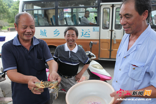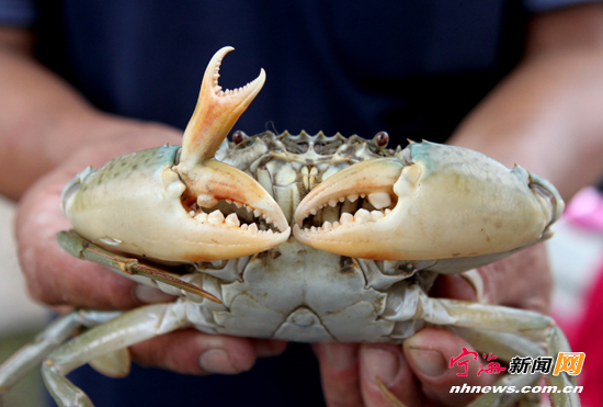 宁海新闻网讯 近日,客运汽车东站的徐师傅给本报新闻热线来电称,发现一只奇特的青蟹。记者赶到现场看到,这只青蟹个头大小与一般的青蟹无异,但其中一个蟹钳上长着一个完整的小蟹钳,周围的人都啧啧称奇。徐师傅说,这是他从一市镇“落小海”的农户那里发现的,是野生蟹。(记者惠广亮摄)