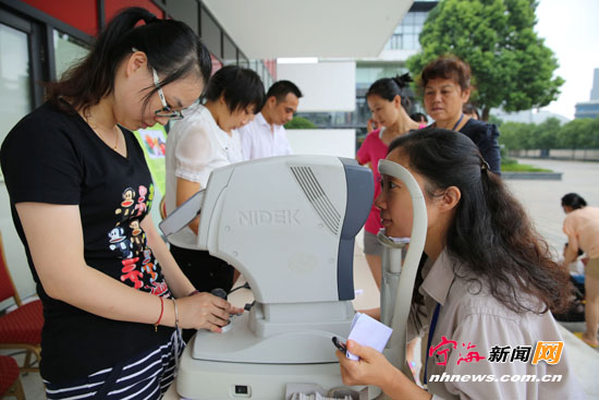 宁海新闻网讯 入秋以来,国华宁海电厂关注员工身心健康,倡导绿色环保的健康理念,陆续开展了以“2014健康生活”为主题的系列关爱活动。图为日前“爱眼护眼”活动现场,宁电员工在进行视力校验。(刘志林郑慧慧摄)