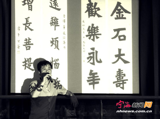 ![]() 宁海新闻网讯 9月17日晚,由中国书法家协会会员、宁海县书法家协会副主席应伟建主讲的《书法的门径》在县志愿服务指导中心公益讲堂开讲。讲座吸引了大批书法爱好者到场聆听,短短一个半小时,应老师让大家感受到,写字不仅是写字,是书法;书法不仅是书法,还是哲学。新颖的观点、深入浅出的讲解令大家获益匪浅。 (通讯员顾恺摄) |