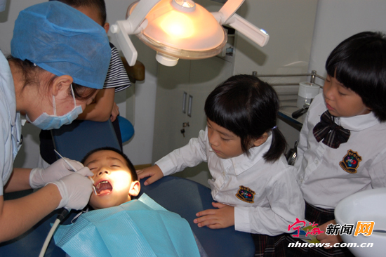 宁海新闻网讯 日前,紫金幼儿园的小朋友来到社区牙科诊所开展社会实践课程,看了病人治牙的全过程,了解牙齿健康的重要性,从小培养口腔保健的正确方式方法,减少蛀牙发生,同时还接受了牙科医生的免费检查。(李江林冯君摄)