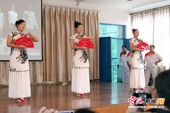 9月28日,县老年大学隆重举行庆国庆文艺演出。悠扬的旋律、优美的舞姿、婉转的唱腔,该校学员自编自演的16个节目精彩纷呈,他们用器乐演奏、舞蹈、歌唱、时装表演等形式表达了对祖国65周年华诞的深情祝福,同时也展现了老年人老有所养、老有所乐、老有所为的精神风貌。(记者 惠广亮 摄)