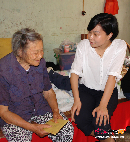 宁海新闻网讯 近日,县妇联组织开展了慰问困难农村老妇女干部活动,共走访慰问了50多名老妇代会主任,向她们表示妇女组织的关爱。图为跃龙街道妇联干部正在慰问辖区原妇女干部。(惠广亮华建平摄)