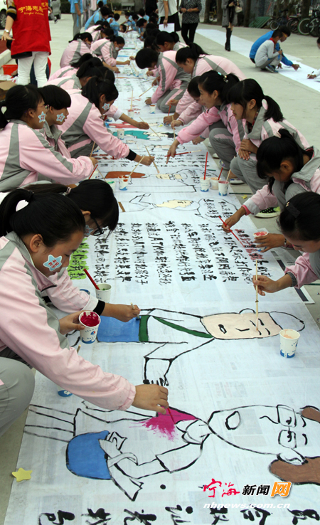 ![]() 宁海新闻网讯 10月30日,县平安办、团县委、越溪乡联合举办“学子代表齐倡议,百米长卷画平安”活动,来自县技工学校、越溪乡初级中学和越溪乡中心小学的120余名学生代表结合日常生活和所见所闻,用手中的画笔绘出了他们眼中的平安宁海,图画活泼生动、色彩鲜明,学子们独特的创意为平安宁海创建营造了浓厚的宣传氛围。(李江林林琳褚谦摄) |