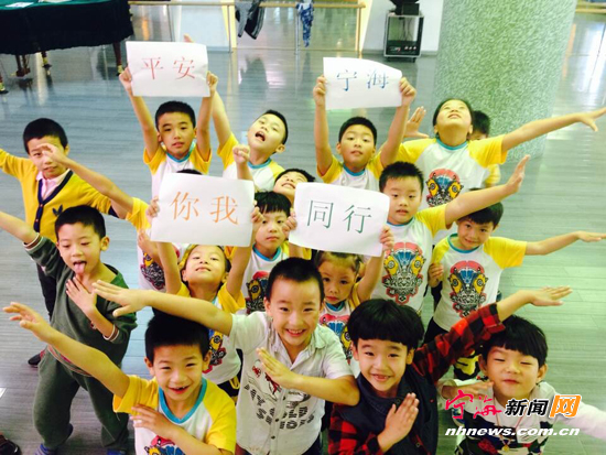 宁海新闻网讯 团县委“宁海新青年”微信平台于10月10日发布晒“平安宁海”赢iPhone6大奖活动以来,共有1200余名网友参与网络晒“平安”活动,阅读转发量达10万余次。图为孩子们与“平安宁海”合影。 (潘旭婷娄文斌摄)