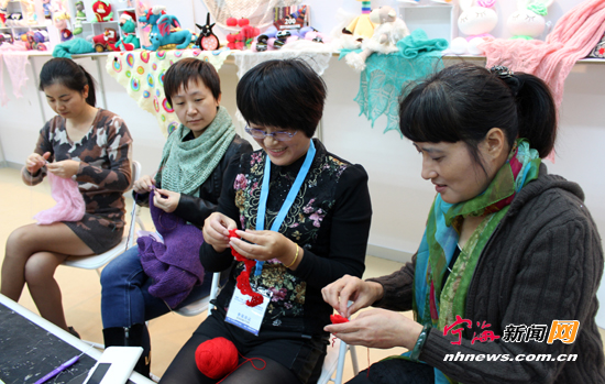 宁海新闻网讯 日前,在中国(宁海)文具文化创意产业博览会上,车河社区钩编乐公益会所的妇女们来到自由去非手工编织生活馆,展示卡通玩偶、围巾、衣帽、编织毯等纯手工编织作品,还开展作品交流、技术指导、传承传统手工、开展义卖、帮扶助困等活动。 (李江林陈玲摄)