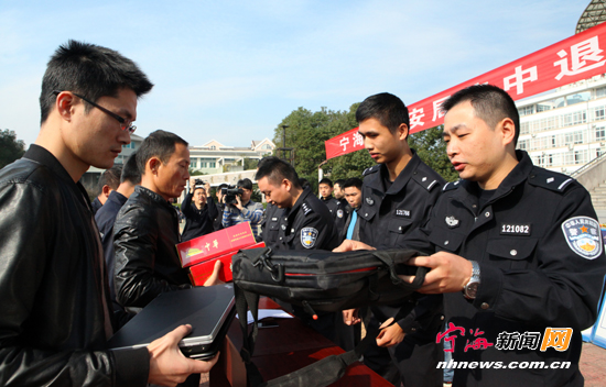 ![]() 宁海新闻网讯 近日,县公安局在潘天寿广场举行集中退赃大会。来自十个乡镇(街道)的十几名失主到场认领损失财物,价值达20余万元。据悉,今年以来,我县警方把群众高度关注的侵财型案件作为工作重点,通过破案、追缴等为受害群众挽回经济损失达724.3万元,受到广大群众的好评。 (李江林周国亮摄) |
