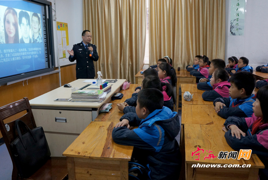 宁海新闻网讯 12月4日是全国法制宣传日,又是我国首个国家宪法日。为培养青少年的法律意识,县公安局、北星社区联合在实验小学组织开展了关爱未成年人普法宣传大课堂活动。 (惠广亮董小玲摄)