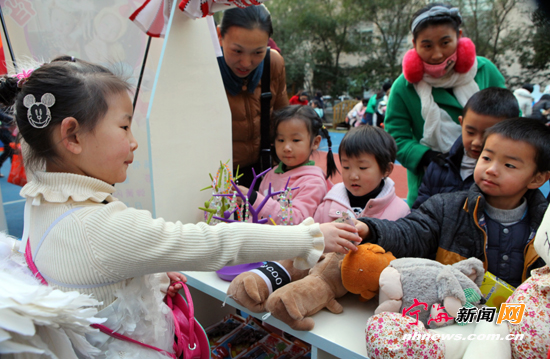 ![]() 宁海新闻网讯 怎样让家里多余的玩具和图书发挥作用?日前,县实验幼儿园举行“跳蚤”市场快乐体验活动,20名大班的小朋友在家长的陪同下设摊招揽生意,几百种儿童玩具和图书吸引着众多“小顾客”的目光,有的孩子还主动和卖主讨价还价,通过“跳蚤”市场体验活动,让孩子们在加加减减中锻炼了自主理财的意识,从小养成节约资源、爱护环境的好习惯。 (李江林陈海俏摄) |