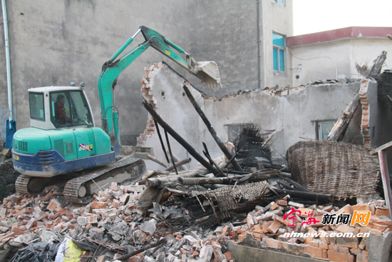 宁海新闻网讯 作为全县唯一一个全镇列为禁养区而需关闭畜禽养殖场的乡镇,连日来,强蛟镇结合当前“三改一拆”工作,强势推进辖区畜禽养殖污染整治行动。图为城建办工作人员在拆除下蒲村一个违章猪棚。