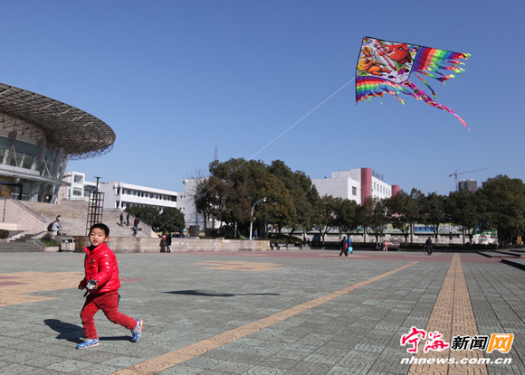 昨日,一名孩子在潘天寿广场上放飞风筝。新年里,不少市民利用假期和家人到户外游玩,尽情享受假日的轻松和快乐,放飞新年快乐好心情。(记者惠广亮摄)