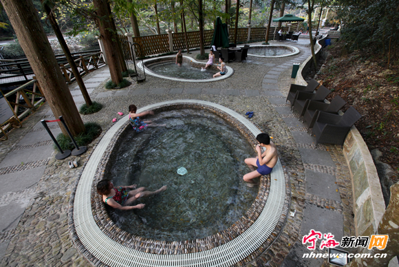 昨日,游客在温泉景区南苑温泉山庄享受露天泡澡的乐趣。“元旦”小长假的晴好天气,吸引了不少人短途外出。假日期间我县各景区游人如潮,人们纷纷选择户外游玩,和亲朋好友沐浴在冬日暖阳下。(记者惠广亮摄)