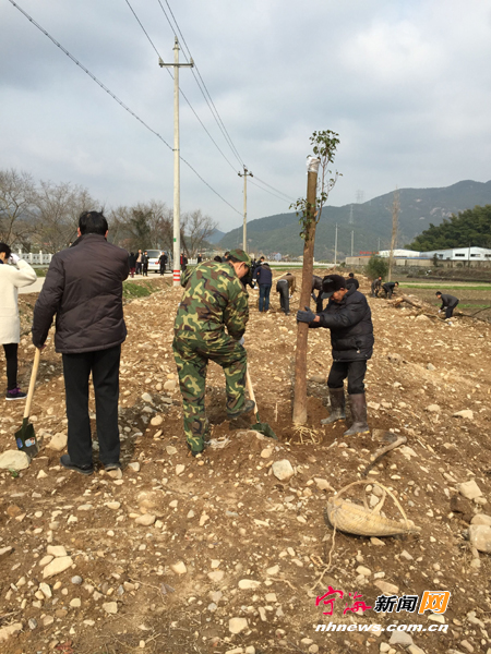 宁海新闻网讯 3月10日上午,梅林街道全体机关干部、民兵预备役人员和基层干部群众一起在凫溪两岸各村开展植树活动,光秃秃的堤岸边将树起一道道绿色的屏障。今年,梅林街道将结合“五水共治”活动着手打造一条沿溪精品观光风景线,让水更清、山更绿、景更美。(通讯员郑伟周摄)