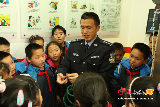 宁海新闻网讯 3月14日是第十二个世界警察日。连日来,县公安机关在全县范围内开展以“面对面、心连心、警民一家亲”为主题的“3·14世界警察日”系列活动。图为桃源派出所开展的相约警务室活动,民警为孩子们讲解各类防范知识,孩子们听得非常入神。(方景霞张岑尤吉吉摄)