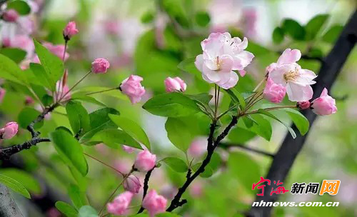 漫步在柔石公园,一种植物的树冠上爬满了繁茂的粉色花朵,这就是城区公园里比较多见的红叶李,小小的花,粉中透白,在紫色叶子的衬托下,煞是好看,而且红叶李会随着季节的变化而呈现不同的色彩。海棠花也是公园绿地里种植比较多的花卉,在兴海路两侧绿化带都可以看到垂丝海棠,另外一种西府海棠在这里也能寻觅到它的踪影。 (记者王劲)
