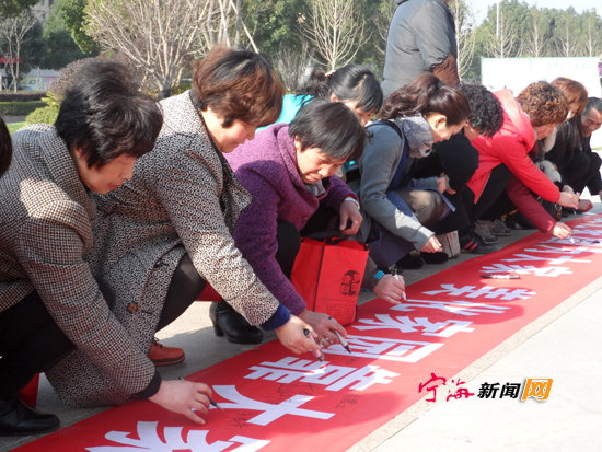 宁海新闻网讯 近日,桃源街道兴海社区组织开展“美丽环境为大家美丽环境靠大家”环境整治活动。图为参与活动的市民正一起签名承诺“美丽环境从我做起”。 (姚亮王雪婷摄)