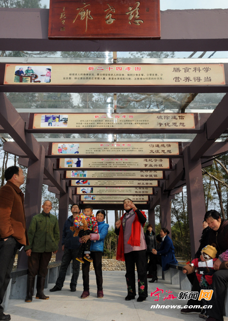 宁海新闻网讯 日前,村民们正在岔路下畈村慈孝公园长廊下聊天。为继承和弘扬慈孝文化,今年初该村投资近100万元建起了占地17亩的慈孝公园和慈孝长廊等,让村民更好地传承和弘扬慈孝文化。(李江林周衍平摄)