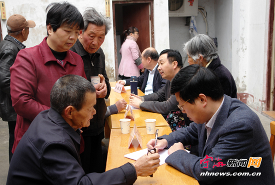 宁海新闻网讯 日前,县人大代表陈开南、王宗沛等走进县前社区,倾听居民反映的旧房拆建、小区绿化、马路菜场、小区养狗等热点和难点问题,并表示,要把老百姓反映的心声及时向有关部门反映,督促尽早整改落实。 (李江林华建平童丽霞摄)