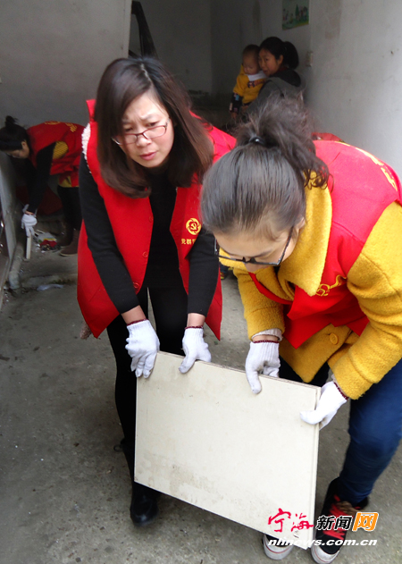 宁海新闻网讯 为深入开展城乡环境卫生大整治活动,近日,跃龙街道松竹社区组织辖区党员志愿者开展楼道大清扫行动。党员志愿者们身穿红马甲,对辖区楼道堆积物进行排查,并逐一进行清理,确保不留死角,为建设“两美”宁海起模范带头作用。(姚亮柴海勇摄)