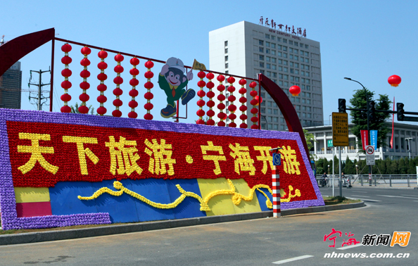 宁海新闻网讯 昨日上午,桃源中路与环城北路交叉处用塑料花摆放着“天下旅游·宁海开游”字样的花簇。为喜迎第十三届中国(宁海)徐霞客开游节的到来,缑城主要街头道路彩旗飘飘,旗幔悬挂,呈现出一派和谐喜庆、简洁而热闹的节日氛围。(记者李江林摄)