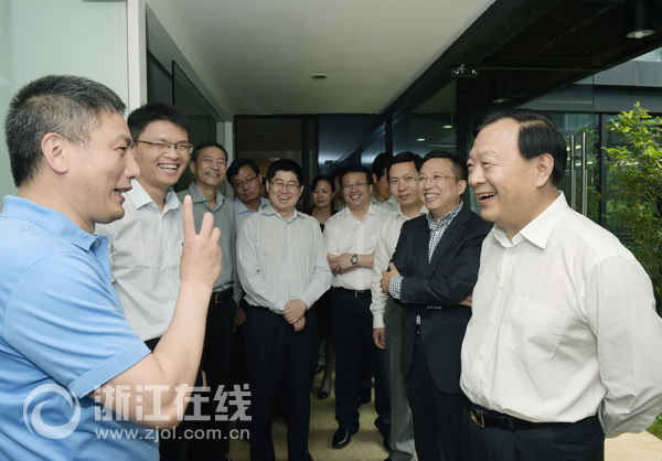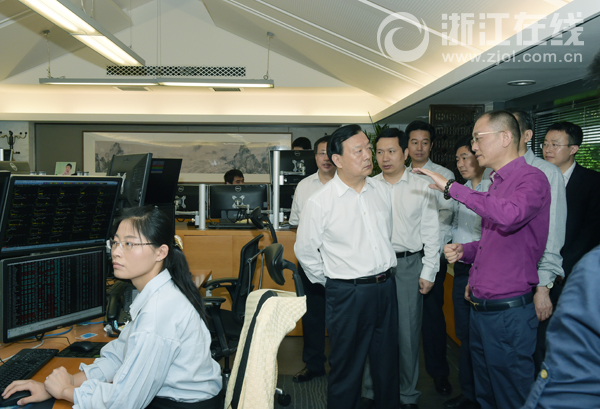 ![]() 5月18日上午,夏宝龙在杭州市玉皇山南基金小镇考察。浙江日报记者 黄曙林/摄