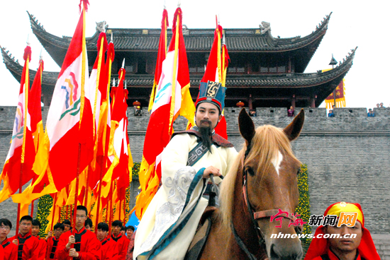 ![]() 徐霞客扮演者骑马上场,从西门出游。(记者 李江林 摄)