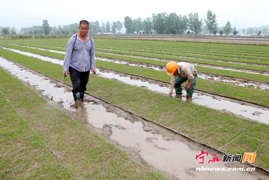宁海新闻网讯 昨日,越溪乡种粮大户应可省正在秧田里,给秧苗作病虫害防治。应可省今年计划种植杂交水稻1500亩,目前正在着手陆续育秧20亩左右,第一批秧苗已在近日开始插种。(惠广亮章亚丽摄)
