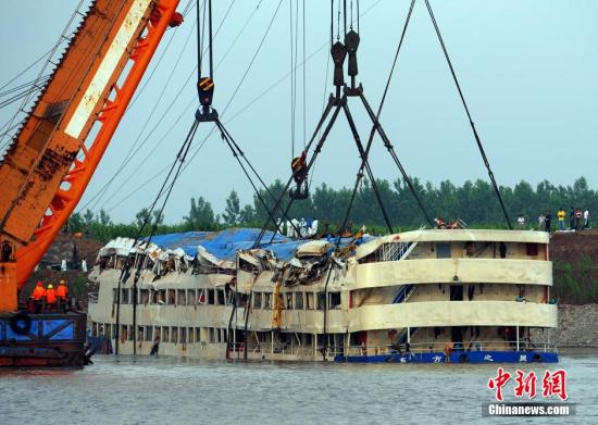 ![]() 6月5日,“东方之星”客轮起浮作业从16时06分开始,到18时50分许,船体被整体打捞出水。中新社发张畅摄 中新社湖北监利6月7日电(记者张芹)7日上午9时许,“东方之星”打捞现场以默哀、船舶鸣笛的形式,悼念在沉船事件中不幸罹难的同胞,表达对逝者的哀思。 按照中国传统习俗,6月7日为“东方之星”遇难人员“头七”祭奠日,这一天本该是这艘客船抵达终点重庆的日子。 遇难者家属、救援人员、当地群众、媒体代表……1000余人的哀悼队伍集结在位于事发地长江北岸的堤坝上、搜救船只的甲板上,静静伫立、默哀。 悼念仪式现场,笛声长鸣,震彻江面上空。面对满目疮痍的“东方之星”,许多人潸然泪下。 2015年6月1日21时28分,从南京驶往重庆的“东方之星”客轮在长江中游湖北监利水域翻沉。船上乘客中年龄最大的83岁,最小的仅3岁。 自“东方之星”翻沉至今,从事发地湖北监利到湖南岳阳再至上海吴淞……一场牵动长江沿线的生命大救援迅速展开,搜救人员不分昼夜全力搜寻。 截至目前,官方公布“东方之星”遇难人员上升至406人,14人生还,仍有36人下落不明,搜救工作仍将继续。(完)