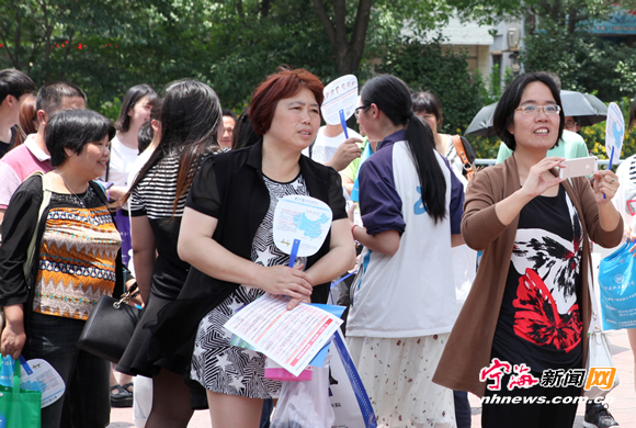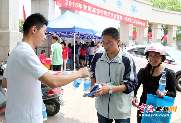 ![]() 爱心企业免费送矿泉水给考生与家长