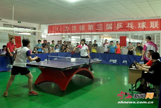 宁海新闻网讯 为丰富全镇干部、群众的文体生活,日前,由力洋镇工会主办的第三届乒乓球联谊赛在力洋成校举行。来自全镇各村、企事业单位的60名乒乓爱好者参加了比赛。选手们挥汗如雨,你来我往、推挡扣杀,现场不时响起阵阵喝彩声。 (李江林李品锋摄)