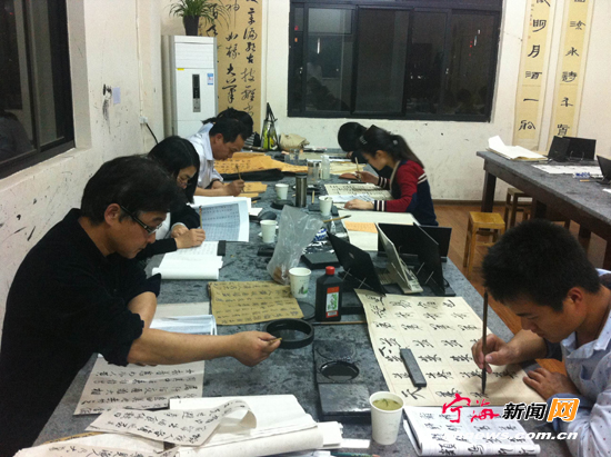 二 吴爱卿住在跃龙山烈士园东侧。这位77岁的老人,思维敏捷,谈吐不俗,举手投足知性优雅。虽然77岁了,但吴爱卿却有一颗年轻的心,更有着年轻人所不及的激情。她可以穿着自己设计的服装,在跃龙山的舞池里翩然起舞,在那一大片花白头发中,显得那样自信优雅。她还可以骑着一辆自行车,长长的裙摆迎风舞动,身子随着双脚的蹬踏、起落而轻轻地舞蹈、律动,像一朵云彩一般。 吴爱卿最早是位教师,后来又半路出家成为服装设计师。吴爱卿说,她自小就喜欢色彩、造型艺术、舞蹈,可是命运却阴差阳错地让她当了个化学老师,但是,对设计的敏感和喜爱却一直未曾消减。工作之余,她就自己设计服装玩,这一玩就玩出了大名堂,一个偶然的日子,她被当时的一休童装厂发现,工厂的领导三顾茅庐,聘请吴爱卿为设计师。就这样,吴爱卿如鱼得水,将自己的才华得以尽情展示,一休也因此一度走向辉煌。 二十年的教书匠,二十年的设计师,一晃到了退休岁月。吴爱卿又玩起了刺绣,当起了老年大学的老师。无论是缝纫、设计,还是刺绣,吴姐都没有教科书,她就是凭着自己对手工的喜爱,一路摸索,自制教材。又一个偶然的机会,她认识了油画家雪晓红老师,于是,年过7旬的她欣然拿起了画笔,成为雪老师的学生。她的第一张画,临的是名家的风景色彩,一番手忙脚乱后,她竟然画出了和原画几可乱真的第一张色彩画。当看到吴爱卿的处女作时,那细腻的笔触和精准的造型,让人惊讶和感动得无以言表。 是什么促使吴爱卿在古稀之年拿起陌生的画笔呢?她微笑着说,无他,只是喜欢。喜欢到什么程度?如痴如醉,废寝忘食。吴爱卿说,有时画一幅画,中途要停歇好几次,因为心里有困惑。她要到老师那里问,阴影怎么表现,密集的叶子怎么表现,问明白了,再回来画。有时为画一棵树,要跑出去好几次,看看阳光下的树干的纹理,叶片的光泽,色彩的整体效果,细细记住了,回来再画。更让人感动的是,为了不耽误做饭,她早早就把要烧的菜准备好,调好闹钟,然后开始作画,十点半闹钟响,插电饭煲电源,十一点闹钟响,准时烧菜,把时间控制在半小时之内,准时开饭。然后再开始画画。吴爱卿说,因为年纪大了思维赶不上年轻人,就得多问多练。因为时间不够用,就放弃了午休,为的是可以多点时间做自己喜欢的事。雪晓红老师也感叹,从来没见到过这样认真耐心的学生。唯有真心喜欢,才有如此忘情,痴情! 同为教师的谢海云跟着胡云泉老师学国画已有两年光景了,在胡云泉的画室里,挂满了她近期的画作,她的山水、花草写意,墨色分明,酣畅淋漓,用笔大胆,用色老练,颇有功底。谢海云说自己其实有很多爱好,文学,书法,绘画,但她最终还是选择了书画,她说书画间的融汇贯通,可以让人走进更深远的艺术空间。谢海云喜欢把绘画当做谈恋爱,把选帖选画种比作找对象,她说,要自己喜欢的才能真正走进去。当初学书法,老师为她指定了褚遂良,尽管后来也学得像模像样了,但终究不是自己喜欢,感觉精气神出不来,于是改弦易辙,重新选了字帖,学唐寅的行书,因为称心如意,所以学起来得心应手,快乐也就自不必说了。 三 戴汝忠、戴尔欢、戴安定是西店团堧人,都是企业家。同村,仿佛年龄,相同的爱好,他们就成了同窗,一起在胡云泉的留耕堂里当起了学生。 他们的出现,使小小的留耕堂更有生气。俗话说:三个女人一台戏。其实,三个男人也可以出一台戏。三个人因为都爱好书画,在而立之年后变成了形影不离的好友。拿他们的话说:物以类聚,人以群分。大家志趣相投,便走得近了。 每个周六下午,他们三个便会早早来到留耕堂画室,开始铺纸研磨,挥毫作画了。说好12点到5点的课,他们总是迟走早到。胡云泉说,说是学生,其实比我这位老师还要上紧。 三位同窗因为年长、好学、幽默健谈,被师妹谢海云称为“大师兄、二师兄、三师兄”,谈起为何学画,大师兄戴尔欢调侃自己是无事可做。当然,这是玩笑。画画,本就是他年少时的理想,因为生活所需,多年来一直没有投身其中。直到现在衣食无虞了,才又拿起画笔。和大师兄一样,二师兄戴汝忠,三师兄戴安定都是因为心里早年就有一颗绘画的种子,现在,因为合适的阳光土壤,这颗种子终于生根发芽。 ![]() 说起三位学画的西店人,不得不提一个人的名字,王利华。除了戴汝忠、戴尔欢、戴安定,在西店团堧村,还有一群爱好书画的人,王利华就是其中的发起者。这位无师自通,热爱书法艺术的人用自己的热爱带动了周边一大群书画爱好者,慢慢地,当地习书作画蔚然成风。几年前,浙江省首批书画村落户团堧。这个宁海唯一一个书画村的成立,无疑成为了这个村的精神航标。而王利华也无疑成了团堧村的文化灵魂。 戴安定说,自从成立了书画村,村子里学习的氛围更浓了,书画室有五十多个成员,其中十五六个是一直坚持书画的。每月的15、30日,定时集中学习交流,逢年过节会搞些外出活动、书画活动,也偶尔参加县市各级比赛,在这样的氛围中,心中的梦想自然就开花了。作为他自己,是以游戏的心态学习,在玩中学,学中玩。有时节假日,家庭成员会全部参与进来,每人都写,然后一起品评,蛮有意思的。有时,他故意写一行留一行,第二天起来,空行已被填满,那是他老婆所为,可是,外人看了却分不出彼此,这是他们最得意也最快乐的事。 |