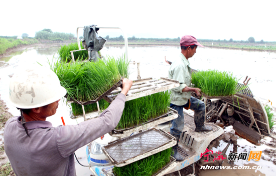 宁海新闻网讯 日前,长街农民胡余苗正在青珠村机插单季水稻。当前正是单季水稻种植季节,我县各地农民利用当前雨水充足等有利天气,纷纷开展单季水稻种植工作。据了解,今年全县单季水稻种植面积约13.3万亩,与去年基本持平。 (李江林 杨晨晓摄)