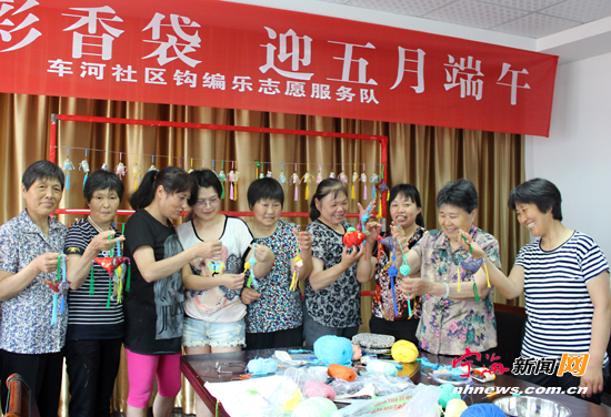 宁海新闻网讯 昨日上午,车河社区钩编乐志愿服务队发动辖区居民开展端午“编香袋、送粽子”活动,并将制作好的香袋随粽子等送给辖区老人和小孩。