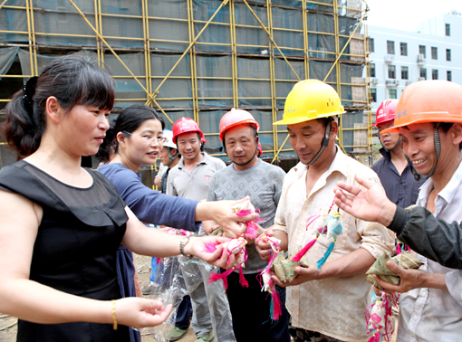 工地农民工吃粽子过端午