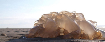英国南部沙滩大量水母搁浅 游客惊呼“异形”