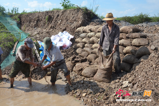 宁海新闻网讯 受今年第九号强台风“灿鸿”袭击,我县沿海乡镇(街道)养殖塘堤坝受损严重。连日来,广大养殖户积极开展灾后生产自救,互帮互助抢修被损堤坝,力争早日恢复正常生产。图为昨日,桥头胡街道西吕村养殖户正在修补养殖塘缺损口。(惠广亮 童璐璐摄)