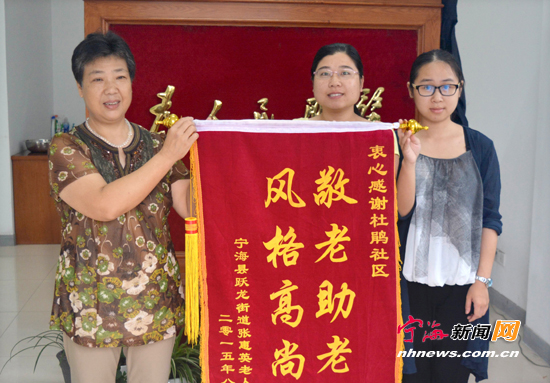 宁海新闻网讯 近日,家住汇景嘉园的魏阿姨将一面写着“敬老助老风格高尚”的锦旗送到了杜鹃社区,对居委会长期以来给予家中92岁老人无微不至的照顾,表示由衷的感谢。据悉,近年来,杜鹃社区一直实实在在情系辖区老人,已多次受到辖区居民的好评。